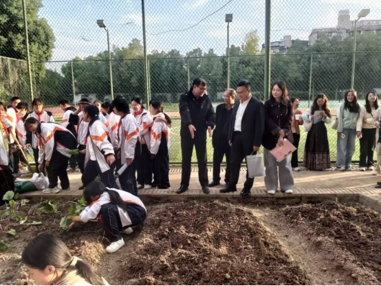 在全体与会人员的见证下,双方代表共同签署共建协议,并为“教育实践基地”揭牌。仪式结束后,两校师生通过问题接龙与寄语互赠等形式,围绕“我心中的历史课堂”“传统文化如何‘活’起来”等议题开展了热烈讨论与互动。随后,参会人员实地观摩了“和美农场”劳动实践课程与学生足球训练课,切身感受堤角中学在劳动教育与体育融合方面的育人成果与办学特色。