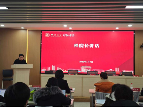 程斯辉结合学院2025年取得的成绩、亟待解决的发展问题和“十五五规划”制定工作,明确了2026年学院工作的总体思路、发展目标和关键举措,并倡议学院教职工为学院发展贡献“金点子”,学院将对优质建议给予奖励。他要求全院上下统一思想、坚定信心,聚焦学科建设,突出特色发展,以更高的标准、更实的作风,扎实推进各项工作落地见效,奋力开创学院事业发展新局面。