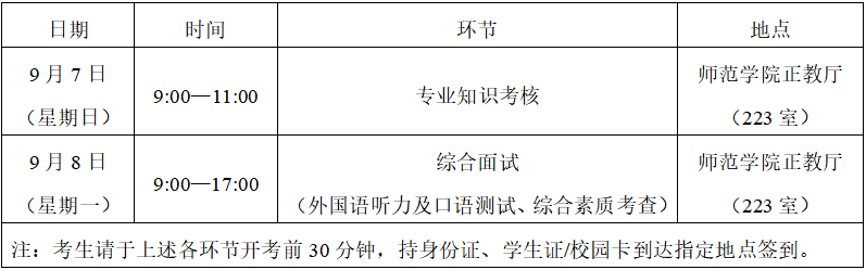 在综合面试中进行,主要考查考生的思想政治品德、专业知识和能力、治学态度、沟通表达、心理素质和教育情怀等综合能力,包括以下几个环节: