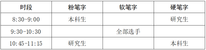 项目分为3类,分别为粉笔字、硬笔字、软笔字。